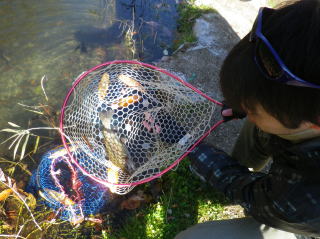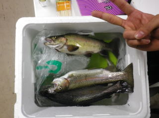 釣り師 鈴木さんが釣り上げたニジマス