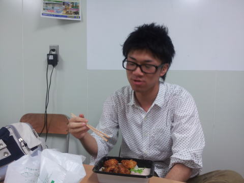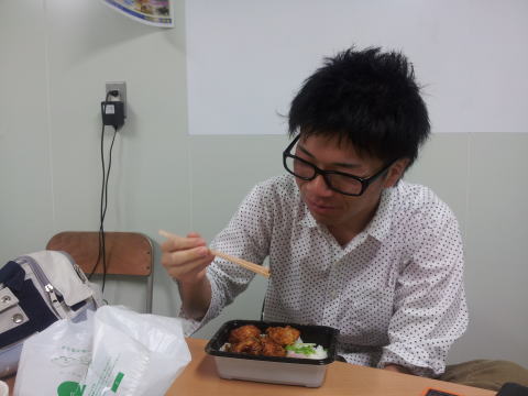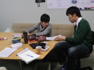 一服しながら勉強するエース田村さんと釣り師鈴木さん