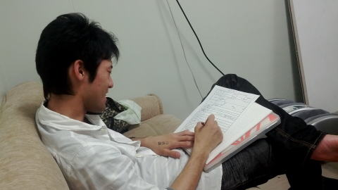 飲み会後酔ってなぜか嬉しそうに自己紹介シートを書く宗賀君なのでした。 by F